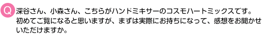 確かに市販のミキサーは食材が飛び散りますが、このコスモハートミックスは安心ですね。 この形状も初めて見ます。