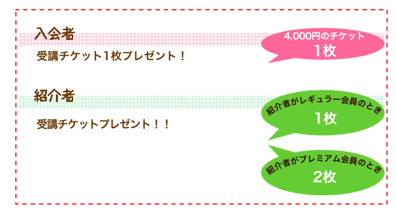ホームメイドクッキングがはじめてのお友達を会員様が同伴して、一緒にチケット制の講座を受講することができます。その場合に限りお友達は当日4,000円のお支払いで受講できます。